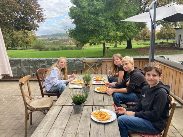Nach unserer Ankunft in Remseck auf dem Sonnenhof stärkten wir uns direkt mit Pommes und Schnitzel für unsere erste Arbeitsphase. Aber zuerst spielten wir ein lustiges Gruppenspiel in der Sonne, bei dem gutes Teamwork gefragt war. Dann sammelten wir – immer noch in der Sonne auf der Wiese – alle Ideen für Verbesserungen, neue Projekte und tolle Aktionen. Im Anschluss begannen wir die Planung der Aktionen in Arbeitskreisen. Natürlich hatten wir auch viele Pausen und Zeit den Hof, das neugeborene Fohlen und den Spielplatz zu erkunden.